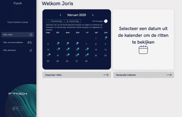 With the Fynch platform, entering travel data only takes a few minutes. In the system, the employee chooses his starting point and the software calculates the number of kilometers. This also eliminates errors in the number of kilometers. Employees who haven’t filled in anything will automatically receive a reminder e-mail. If your employees use the Fynch app, the kilometers are calculated automatically.