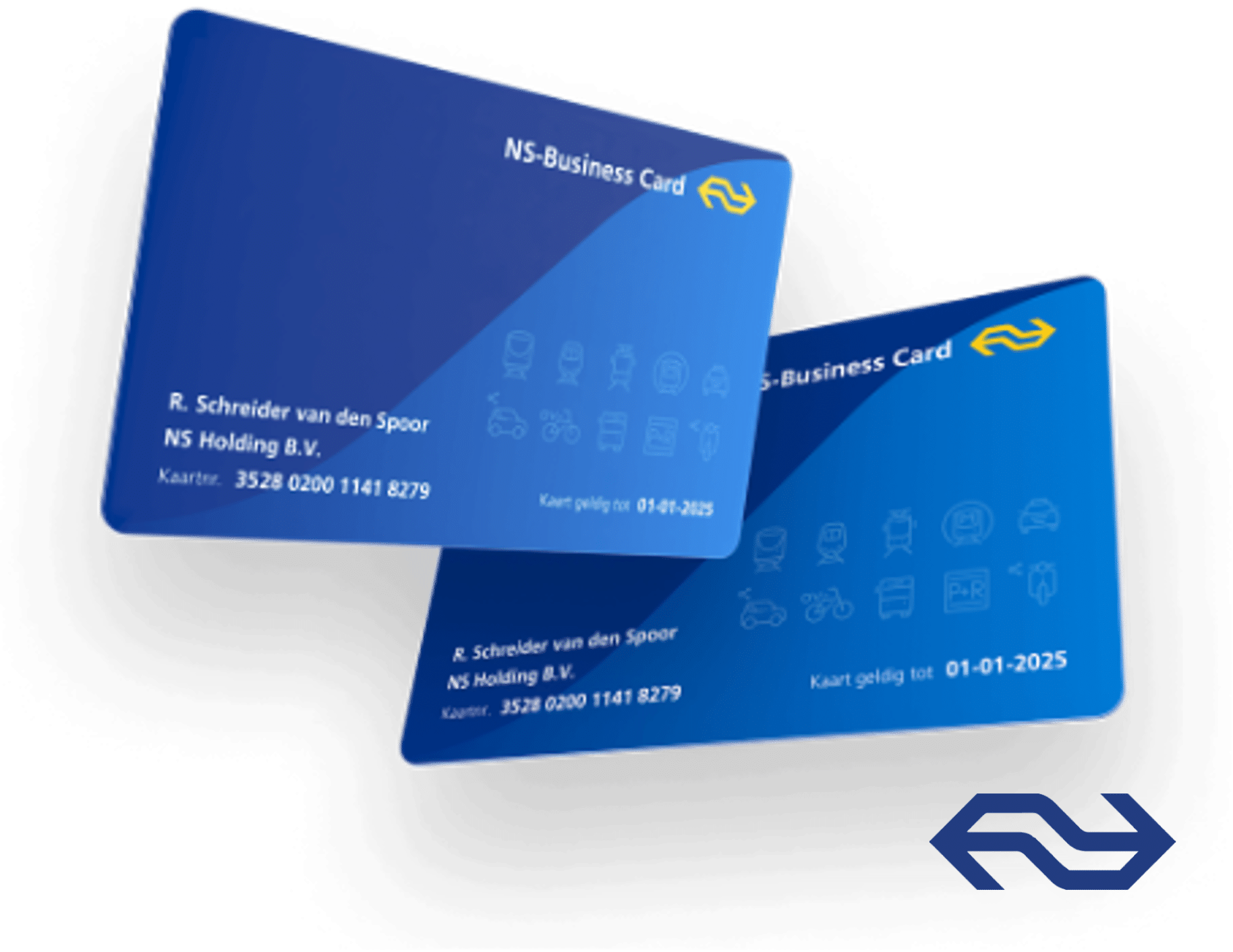 Als officieel gecertificeerd facilitator van NS bieden wij de NS-Business Card aan. De meest complete en meest voordelige mobiliteitskaart van Nederland! Deze kaart geeft jouw medewerkers ruimte en vrijheid om zelf te kiezen hoe zij reizen, de gemaakte kosten ontvang je maandelijks op één verzamelfactuur; declaraties zijn verleden tijd.